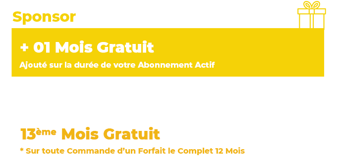 Pour chaque nouveau client référé pour une période de 12 mois, le Sponsor dispose de 30 jours gratuits.
